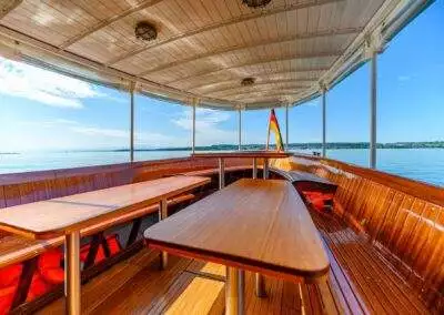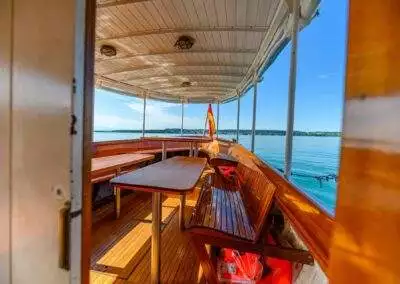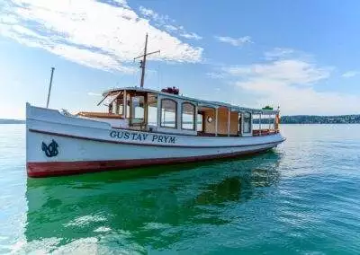 Erleben Sie unvergessliche Stunden auf dem Bodensee mit der Gustav Prym! Ob privates Event oder entspannte Rundfahrt – sichern Sie sich jetzt Ihre exklusive Charter und genießen Sie unvergessliche Momente auf dem ältesten motorgetriebenen Fahrgastschiff des Bodensees!